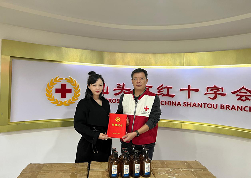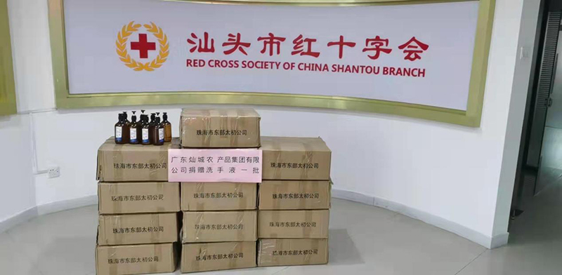 于2021年11月25日廣東燦城農產品集團有限公司向汕頭紅十字會捐贈洗手液一批,希望盡企業的微薄之力給前線醫護人員帶去保護以及溫暖,希望前線的醫護人員能夠在堅守崗位的同時做好防護措施。
